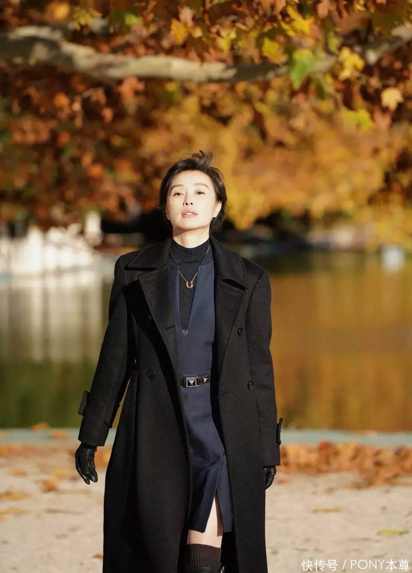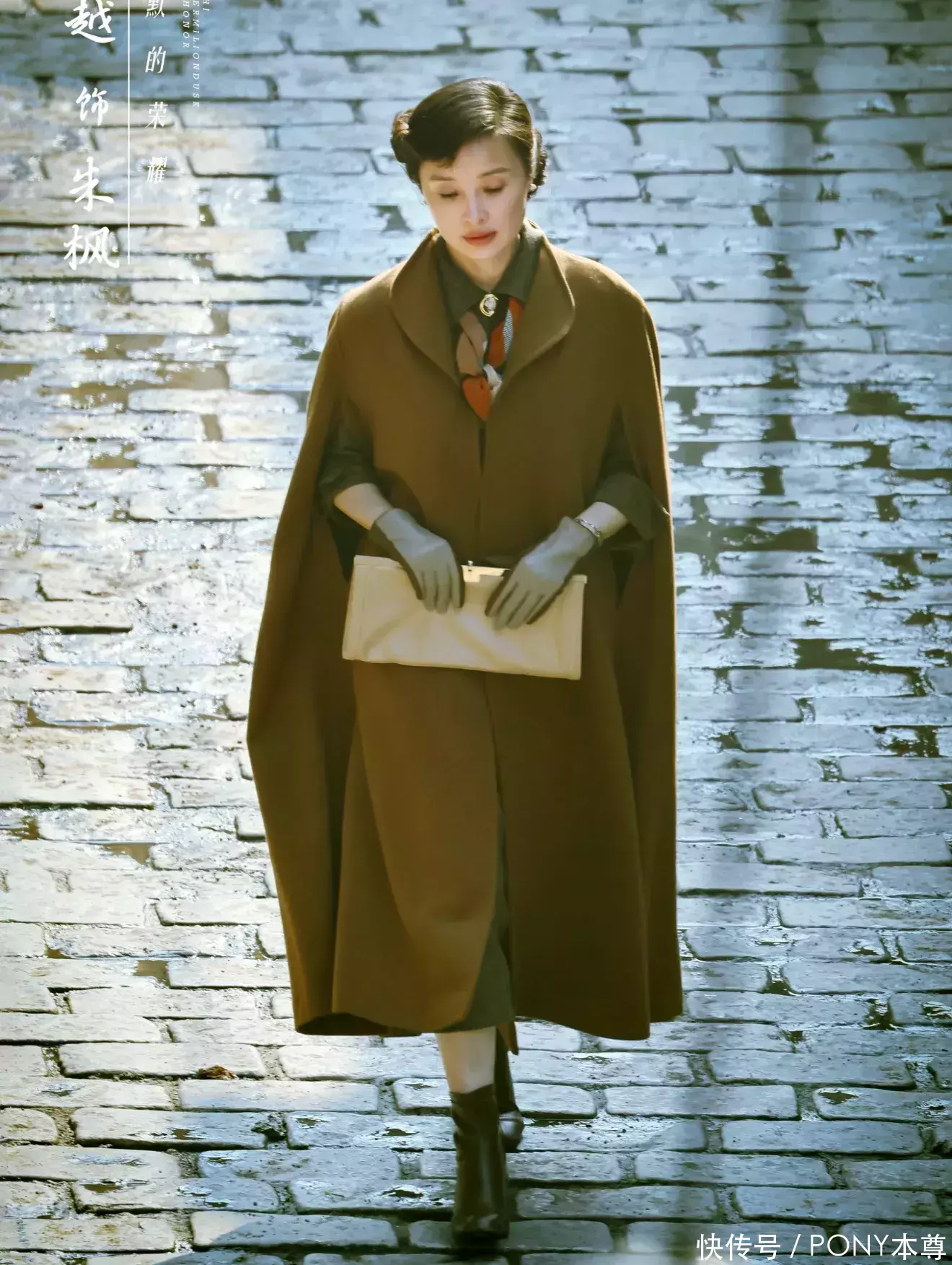 搭配上,吴越选择了复古短卷发,蓬松的卷发弧度与斗篷大衣的复古气质完美呼应,既修饰了脸型,又增添了温柔甜美的姿态;脚踩简约短靴,刻意露出一小节脚踝,打破了斗篷大衣的厚重感,让造型更显轻盈灵动。整套造型没有多余的配饰,仅靠服装与发型的呼应,就将 “岁月静好的优雅” 展现得淋漓尽致 —— 没有夸张的设计,没有艳丽的色彩,却靠精准的单品选择与气质契合,让 52 岁的吴越透着 “认真装扮后的精致感”,温柔又有力量。